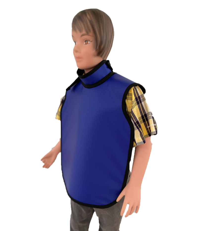 Elaborado en caucho plomado importado de 0.5 mm, ajustable con velcro y/o chapa. USO: Para protección radiológica a nivel personal, para radiaciones ionizantes emitidas por equipos de Rayos X Convencional, Odontológicos, y afines, forrados en lona anti fluidos.